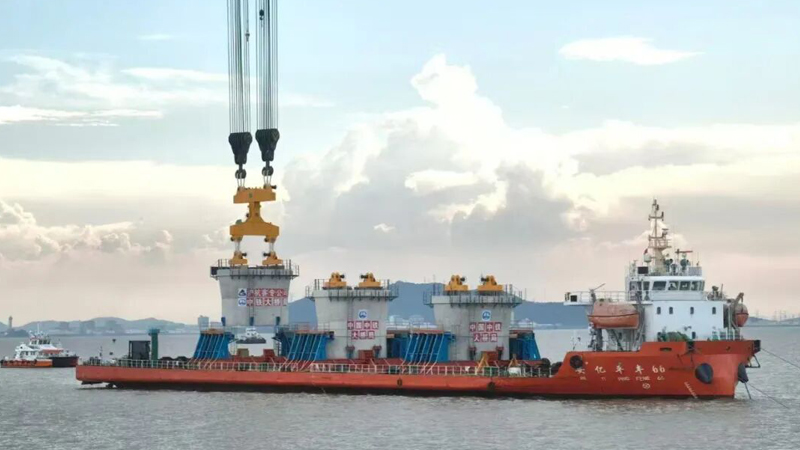 在杭州灣跨海鐵路橋中航道橋建設(shè)現(xiàn)場(chǎng),高7米,重達(dá)500噸的首節(jié)預(yù)制墩身節(jié)段在“盈尚1”起重船的吊裝下,被精準(zhǔn)架設(shè)到108號(hào)墩上,巨力索具再次為世界級(jí)工程項(xiàng)目添力!