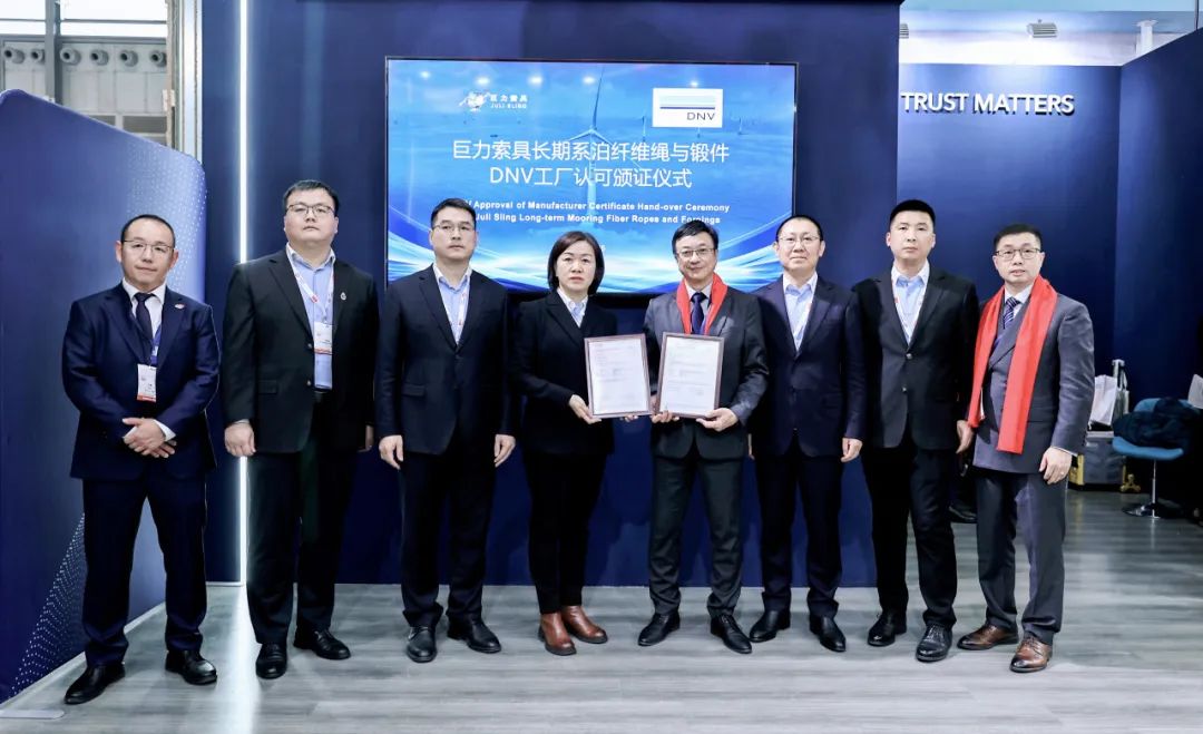 目前,巨力索具系泊鋼絲繩、系泊纜繩、系泊連接件均取得船級(jí)社認(rèn)證,提高了系泊產(chǎn)品的生產(chǎn)制造水平,滿足了市場(chǎng)需求,將大大推動(dòng)海上石油、海上風(fēng)電、海上光伏、海洋牧場(chǎng)等領(lǐng)域的高質(zhì)量發(fā)展。