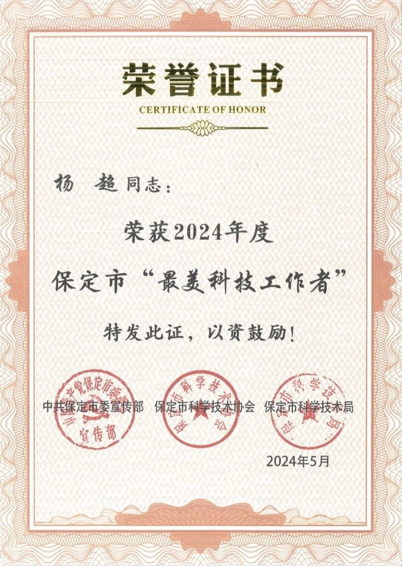 近日,保定市市委宣傳部、市科學(xué)技術(shù)協(xié)會、市科技局聯(lián)合開展了2024年保定市“全國科技工作者日”評選活動,經(jīng)組織推薦和評審專家委員會綜合評比、公示,巨力索具股份有限公司黨總支書記、總裁楊超榮獲“最美科技工作者”稱號。