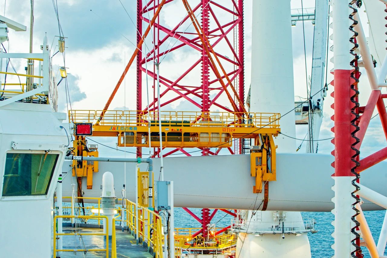 2021年9月16日,汕頭某海域,巨力索具研發(fā)的國(guó)內(nèi)首臺(tái)55噸大兆瓦全角度旋轉(zhuǎn)式海上單葉片吊具,剛剛面世,便展開(kāi)連續(xù)作業(yè),順利完成5臺(tái)風(fēng)機(jī)的葉片吊裝,經(jīng)受住了考驗(yàn),完美的展示了巨力吊具的高可靠性、高安全性及高效率。