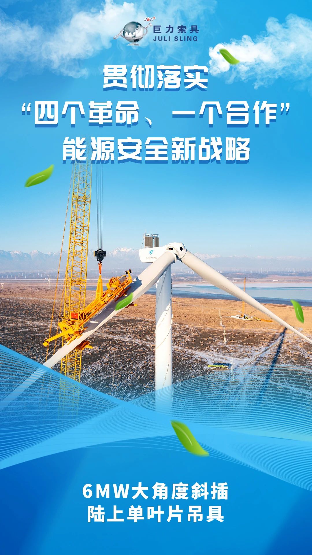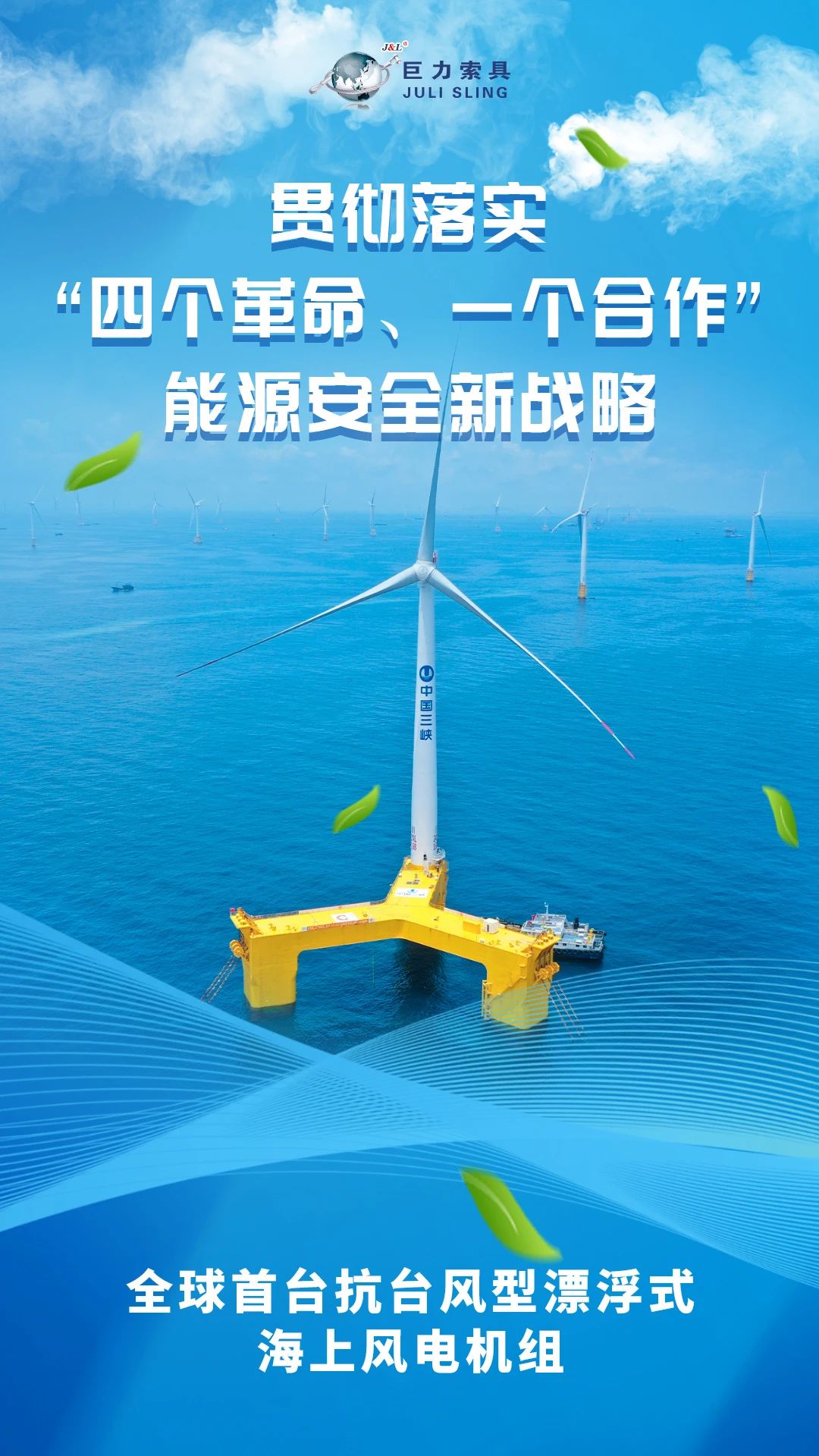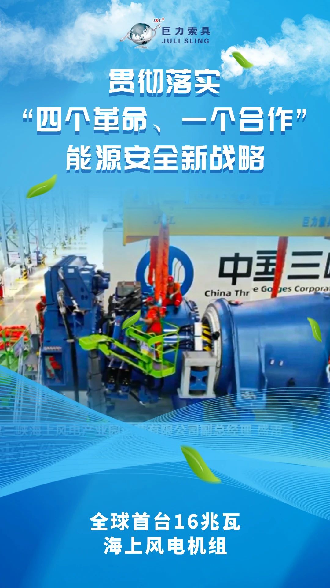 本期,巨力索具官微發(fā)布能源安全新戰(zhàn)略十周年系列報(bào)道之一,看能源安全新戰(zhàn)略背景下,巨力索具繪就的風(fēng)電領(lǐng)域節(jié)能降碳和諧畫(huà)卷,感受奮進(jìn)路上結(jié)出的累累碩果。