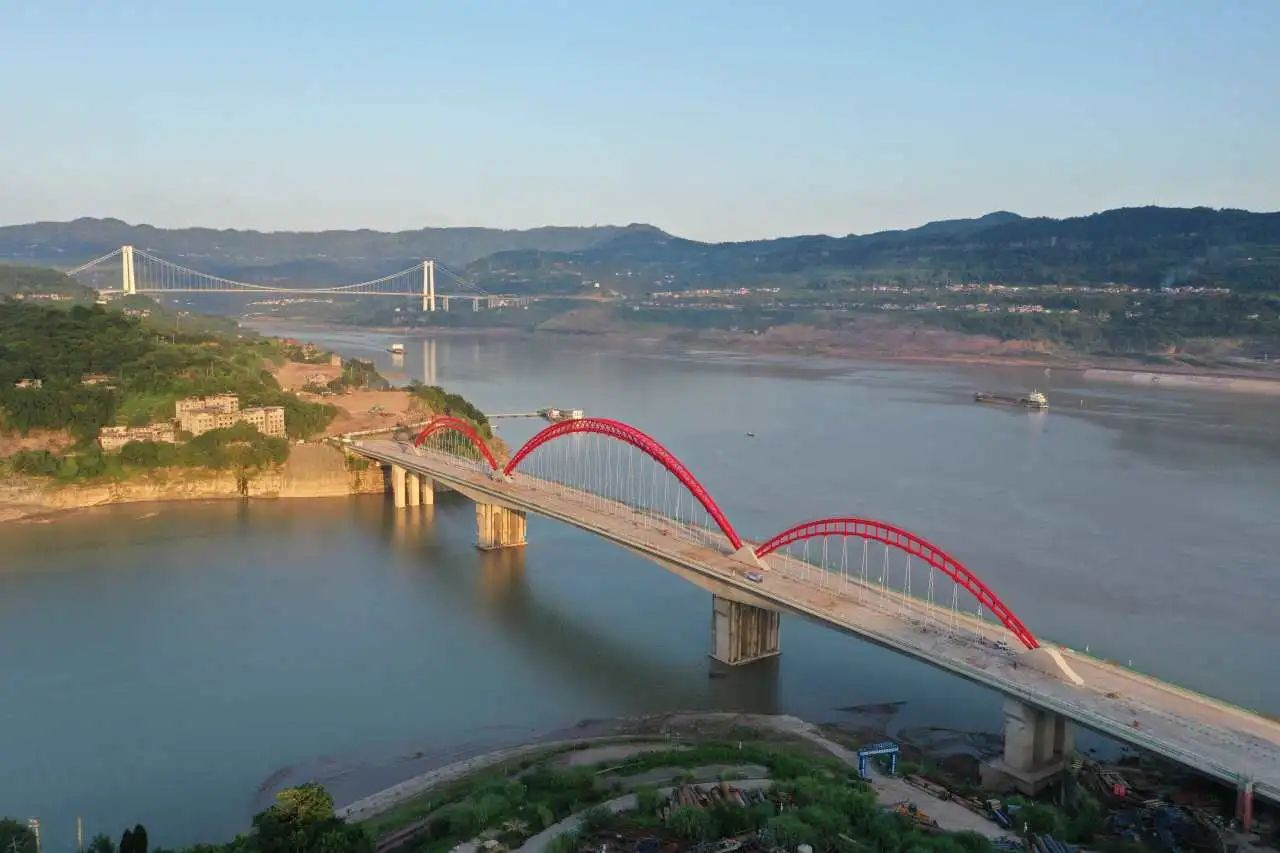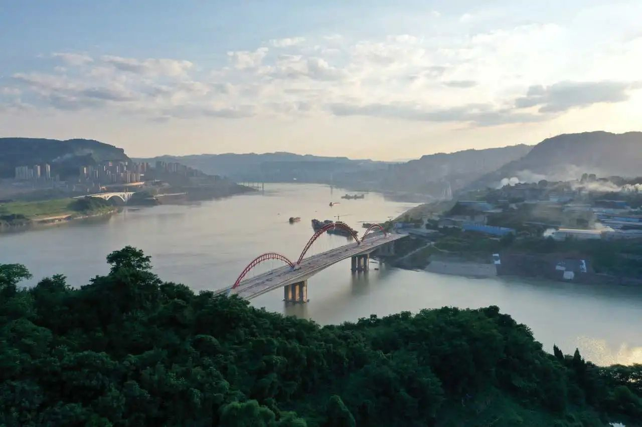 青山綠水之間,一座大橋騰空而起,不僅方便了當(dāng)?shù)厝嗣窠煌ǔ鲂校龠M(jìn)經(jīng)濟(jì)發(fā)展,而且在川渝大地,長(zhǎng)江之側(cè)形成了一道亮麗的風(fēng)景線,兼具美學(xué)和實(shí)用價(jià)值。