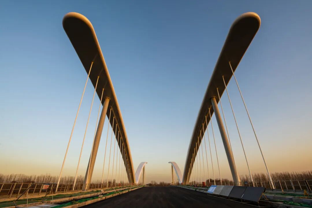大橋全長259米,造型以鷺鷥涉水時(shí)舒展的羽翼為原型,取展翅翱翔,高飛于空的意境,將人文理念融合于雄安灣生態(tài)自然的景觀中。以“展翅高飛”為景觀主題,塑造整體協(xié)調(diào)、重點(diǎn)突出的夜間燈光效果,營造“清新、亮麗、現(xiàn)代、雅致“的夜間橋梁景觀形象。橋梁全線有功能照明和可分級(jí)控制的景觀照明,為平日和節(jié)日提供不同的照明效果。