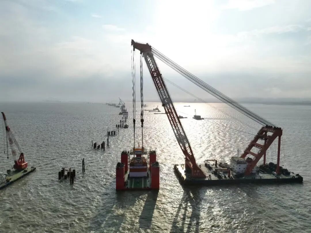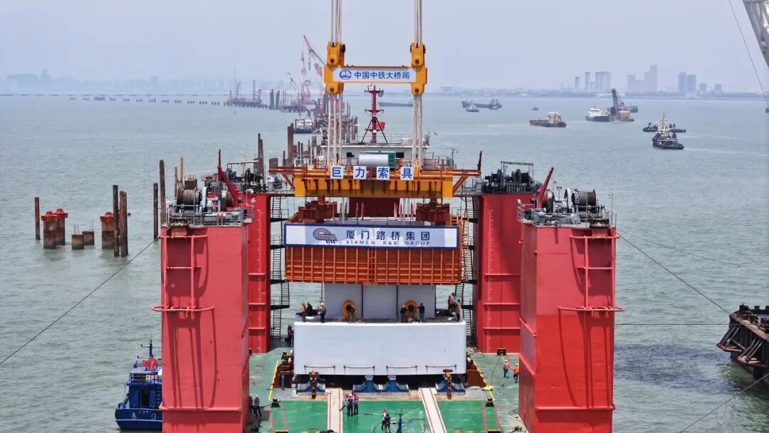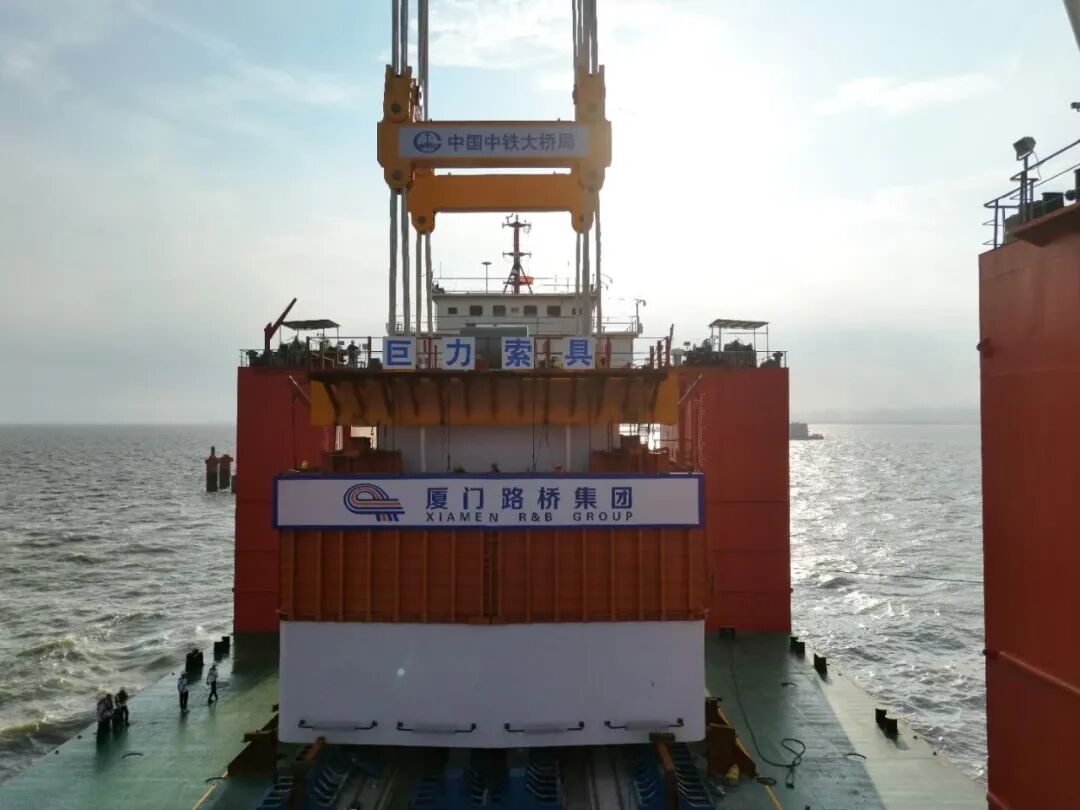 此次完成吊裝的預制墩臺體型巨大,長15.3米、寬11.6米、高4.5米,總重量相當于460輛標準貨車的載重總量。