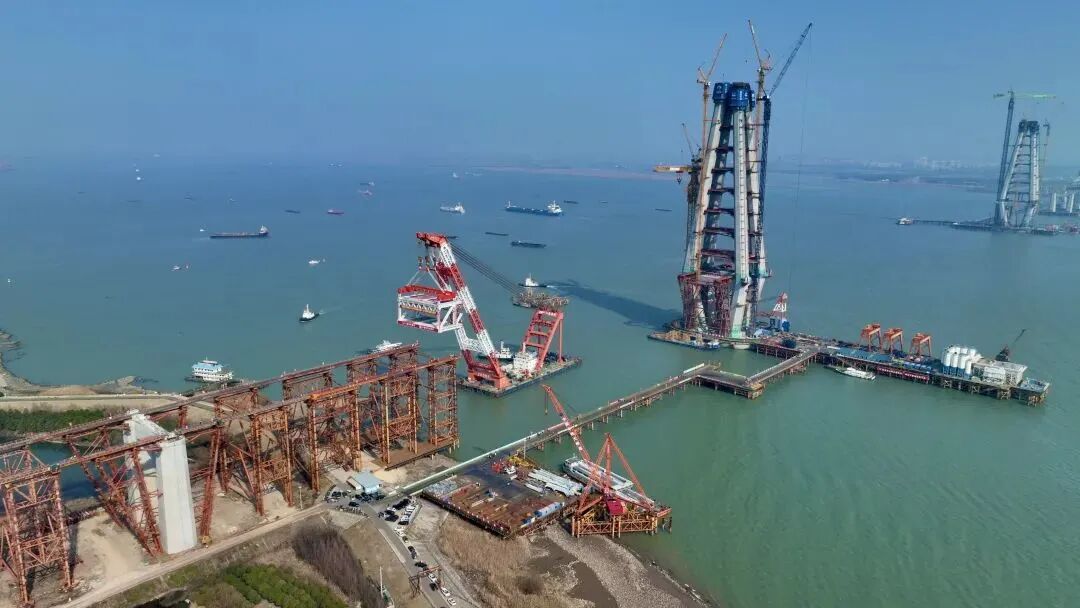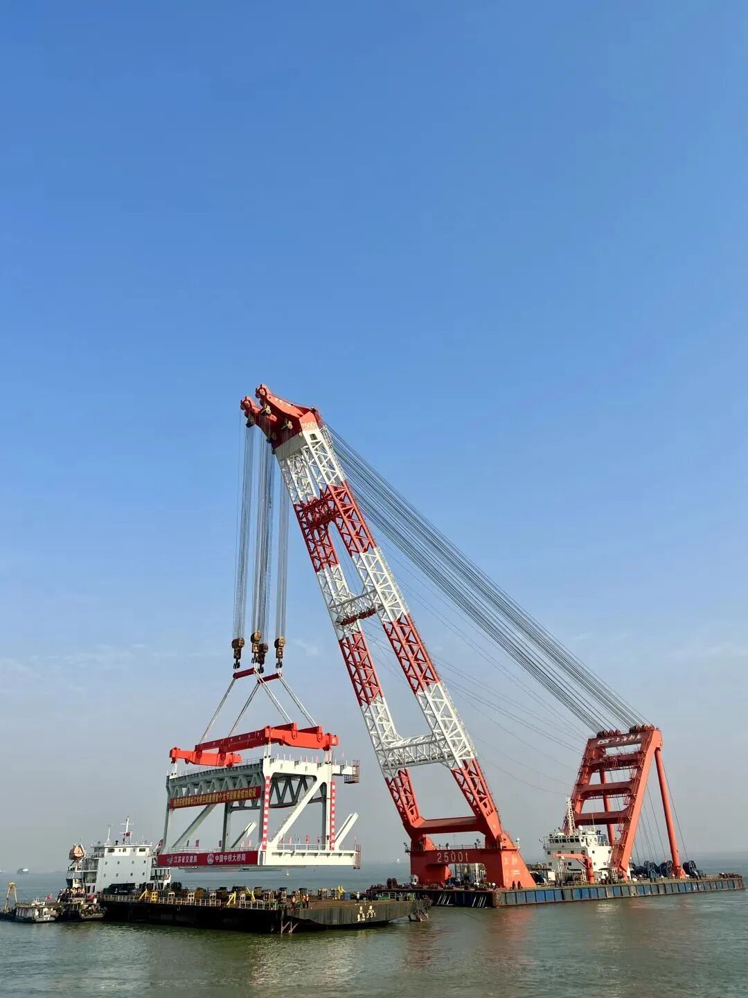 2023年2月,大橋主航道橋首個1280噸的鋼梁需在高空與兩側(cè)梁段實現(xiàn)毫米級對接,巨力索具1900噸大節(jié)段鋼梁吊具全程保障該項目吊裝順利進(jìn)行。