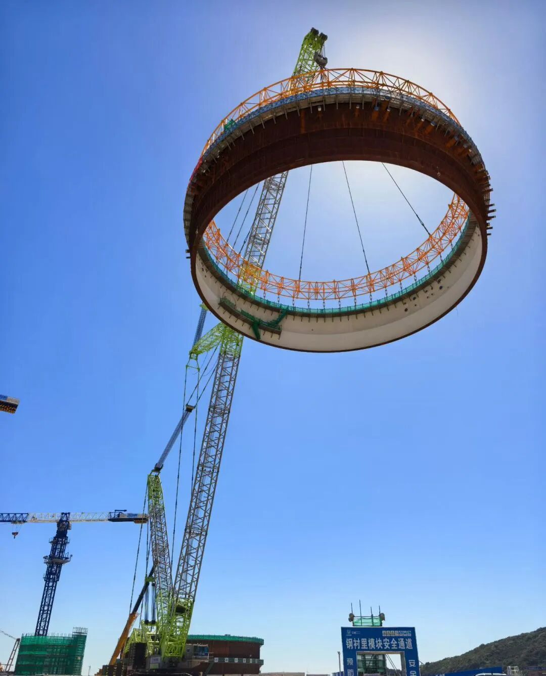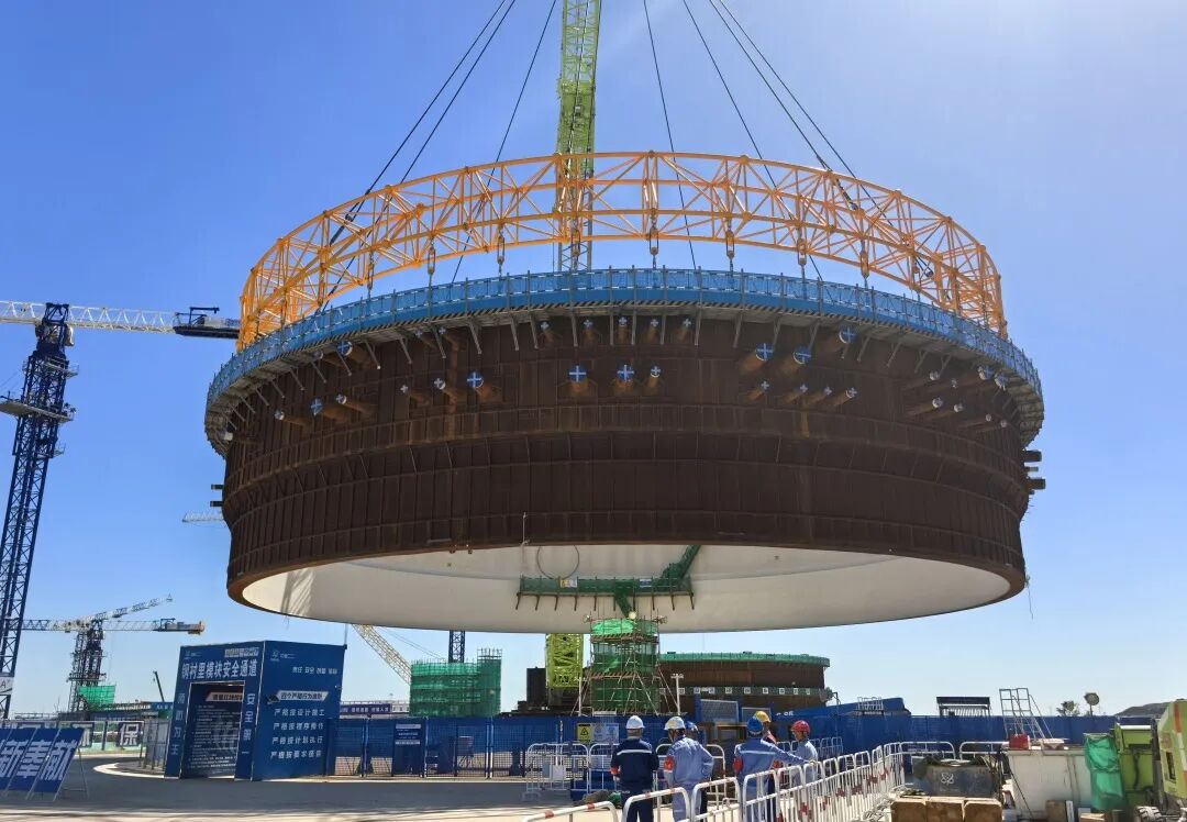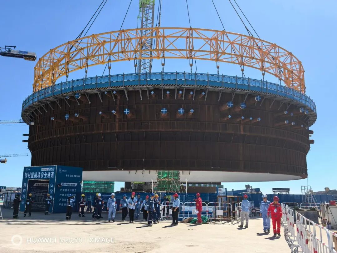 9月28日,金七門核電1號(hào)機(jī)組鋼結(jié)構(gòu)安全殼鋼襯里模塊一平穩(wěn)落位,首個(gè)大型模塊吊裝任務(wù)圓滿完成。此次吊裝采用了以巨力索具環(huán)形吊具為代表的先進(jìn)吊裝技術(shù),實(shí)現(xiàn)了安全精準(zhǔn)的吊裝作業(yè)。