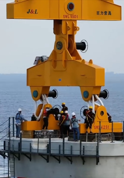 由巨力索具為中國船舶集團海裝風電股份有限公司生產(chǎn)制作的5MW海上單葉片吊具在福州平潭吊裝圓滿成功。