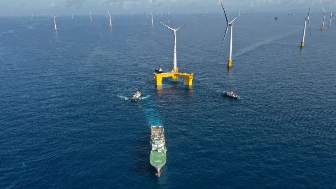 12月7日13時37分,全球首臺抗臺風(fēng)型漂浮式海上風(fēng)電機(jī)組,在廣東陽江海上風(fēng)電場成功并網(wǎng)發(fā)電。