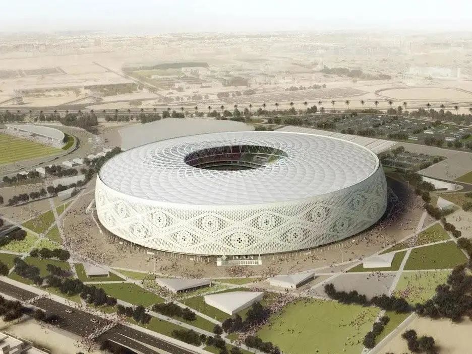 該球場(chǎng)是由卡塔爾建筑師Ibrahim M. Jaidah設(shè)計(jì)的,其設(shè)計(jì)靈感源自于阿拉伯男子佩戴的白色針織帽(Gahfiya),獨(dú)特的鏤空編織圖案極具阿拉伯特色,將阿拉伯當(dāng)?shù)仫L(fēng)情展現(xiàn)得淋漓盡致。