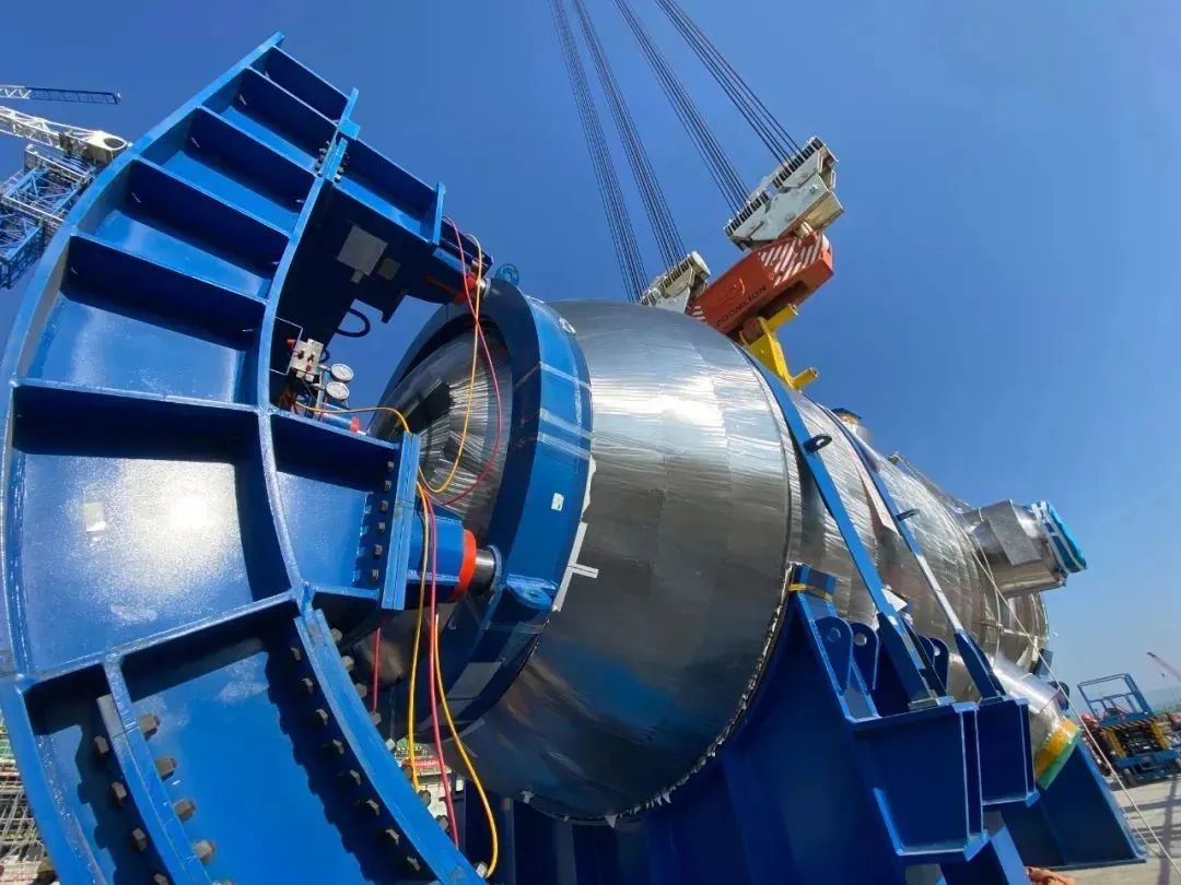 2021年10月19日,由中國核電工程有限公司總承包的第15臺核電機組——“華龍一號”批量化建設(shè)漳州核電1號機組反應(yīng)堆壓力容器安全穩(wěn)妥吊裝成功,整個吊裝過程中所用的吊具均由巨力索具提供,開創(chuàng)了國內(nèi)自主三代核電反應(yīng)堆壓力容器在核島外部翻轉(zhuǎn)后垂直引入的“華龍新記錄”。