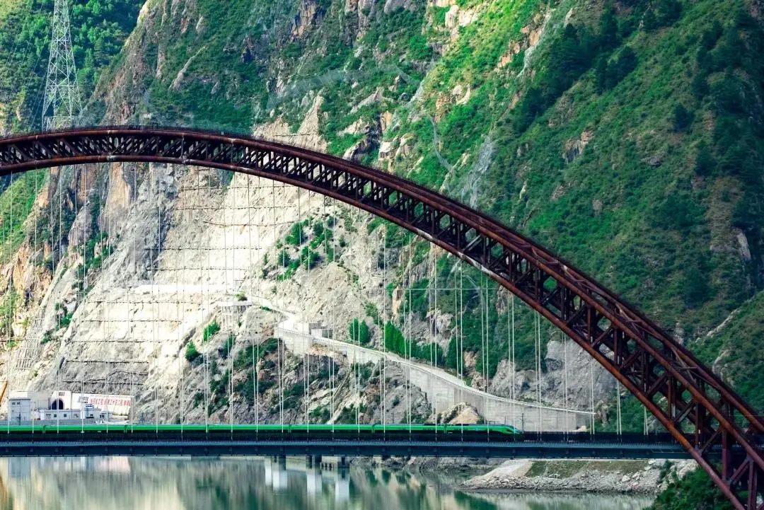 拉林鐵路正線全長435.48公里,設(shè)計時速160公里,是西藏首條電氣化鐵路。藏木雅魯藏布江雙線特大橋全長525.1米,主拱跨徑430米,橋址處海拔3350米,是目前世界上海拔最高、跨度最大的鐵路鋼管混凝土拱橋,也是雅魯藏布江上首座“一跨過江”的鐵路橋梁。