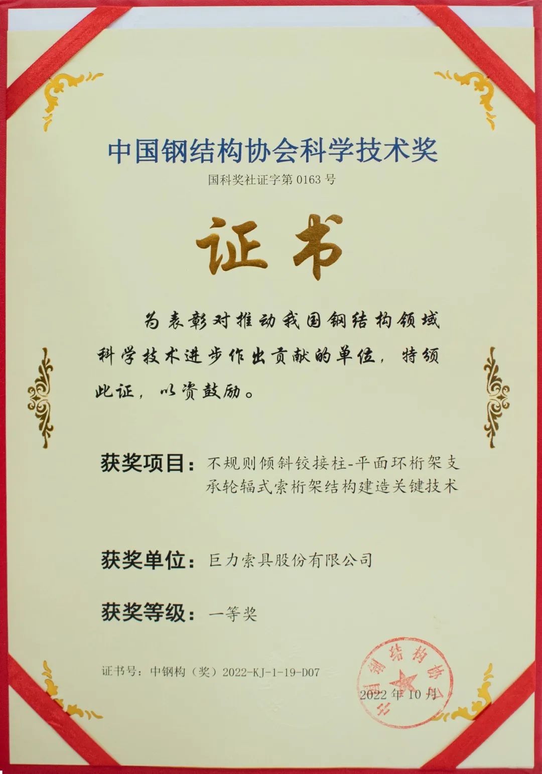 巨力索具斬獲“中國鋼結(jié)構(gòu)協(xié)會科學(xué)技術(shù)獎”一等獎!
