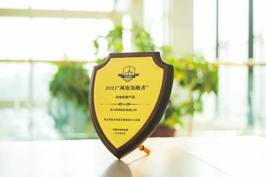 2022年1月8日,由中國風(fēng)電新聞網(wǎng)主辦的2021(首屆)“風(fēng)電領(lǐng)跑者”技術(shù)創(chuàng)新論壇暨頒獎盛典在北京成功舉行。巨力索具憑借“國內(nèi)首臺50噸大兆瓦全角度海上單葉片吊具”榮獲2021年度“風(fēng)電領(lǐng)跑者”最佳服務(wù)產(chǎn)品榮譽稱號。