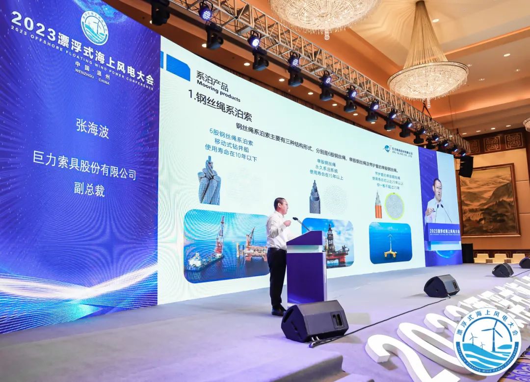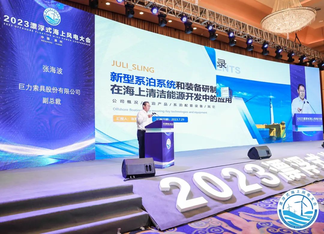 2023年7月28日-29日,溫州市人民政府聯(lián)合中國海洋工程咨詢協(xié)會海上風電分會、國家風力發(fā)電工程技術研究中心等風電重點企事業(yè)單位舉辦的“2023年漂浮式海上風電大會”順利召開。巨力索具副總裁張海波出席會議并做報告。