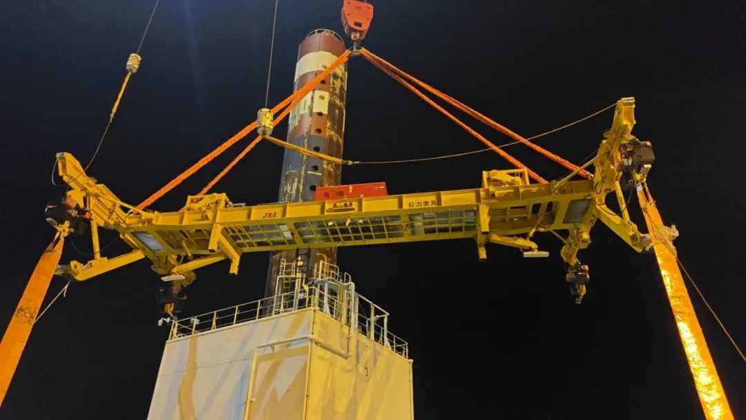 巨力索具為本次全程吊裝保駕護(hù)航,提供的50噸折疊式海上單葉片吊具實現(xiàn)單個風(fēng)電葉片在空中與輪轂的對接安裝。